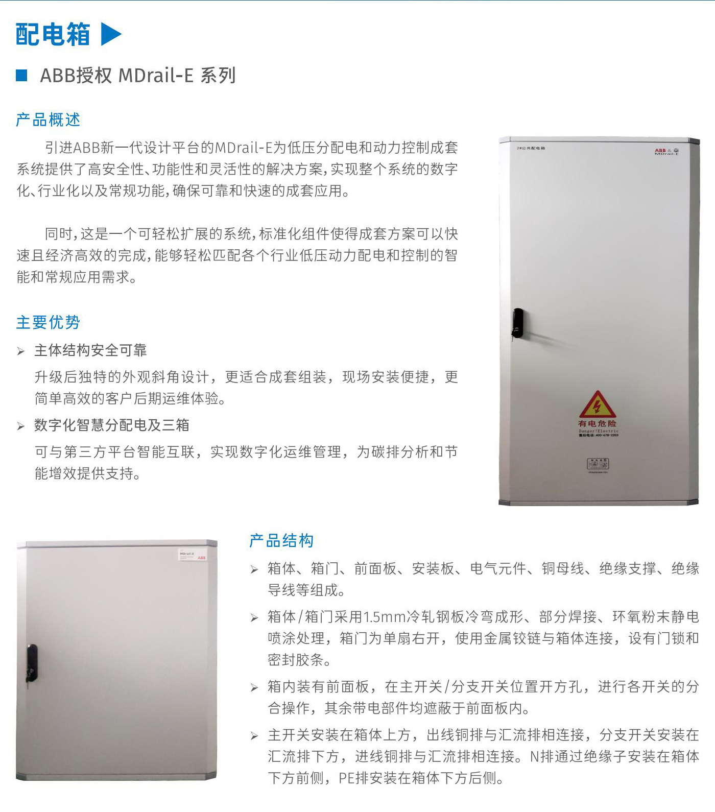 引进ABB新一代设计平台的MDRAR-E为低压分配电和动力控制成套系统提供了高安全性、功能性和灵活性的解决方案,实现整个系统的数字化、行业化以及常规功能,确保可靠和快速的成套应用。